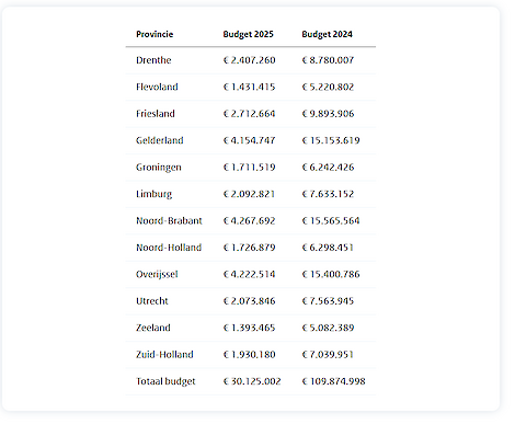 Het totale budget voor de MGB-regeling is 140 miljoen euro. Provincies hebben twee mogelijkheden om geld bij het Rijk aan te vragen. De eerste aanvraagperiode is al geweest. De tweede aanvraagperiode is in het najaar van 2025. Per provincie is er een maximaal bedrag beschikbaar. Met de 2,7 miljoen die Friesland aanvraagt, voldoet het aan het maximale aanvraagbedrag.