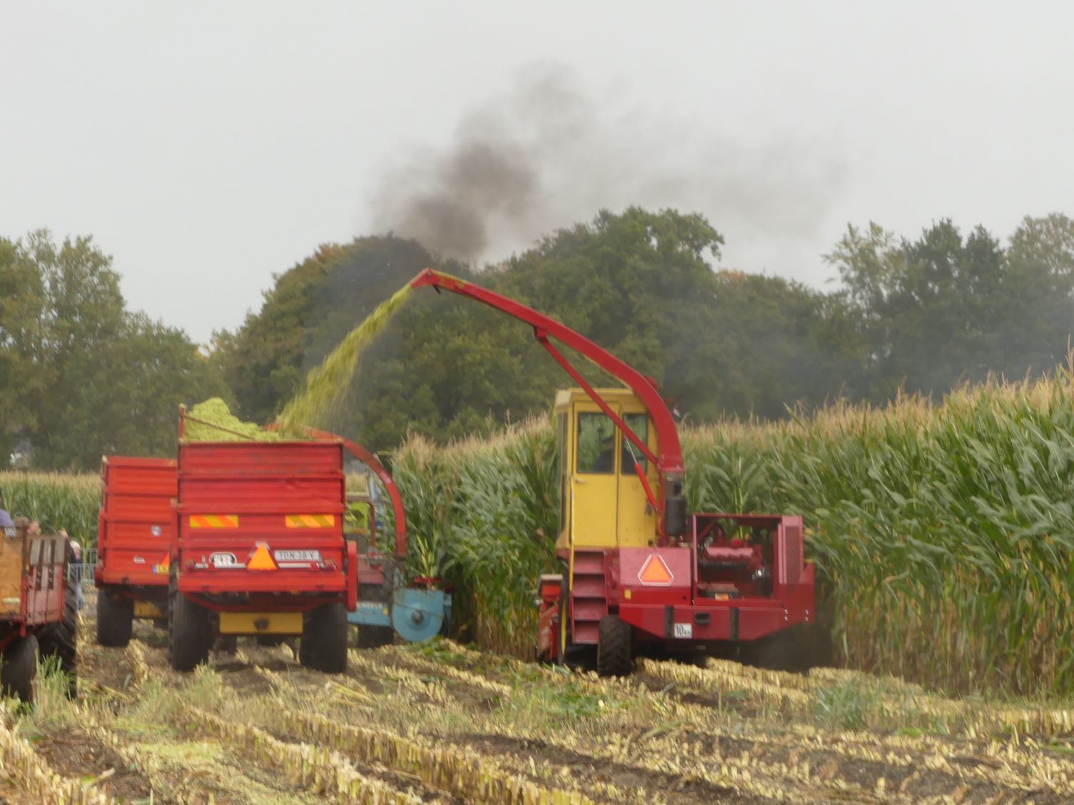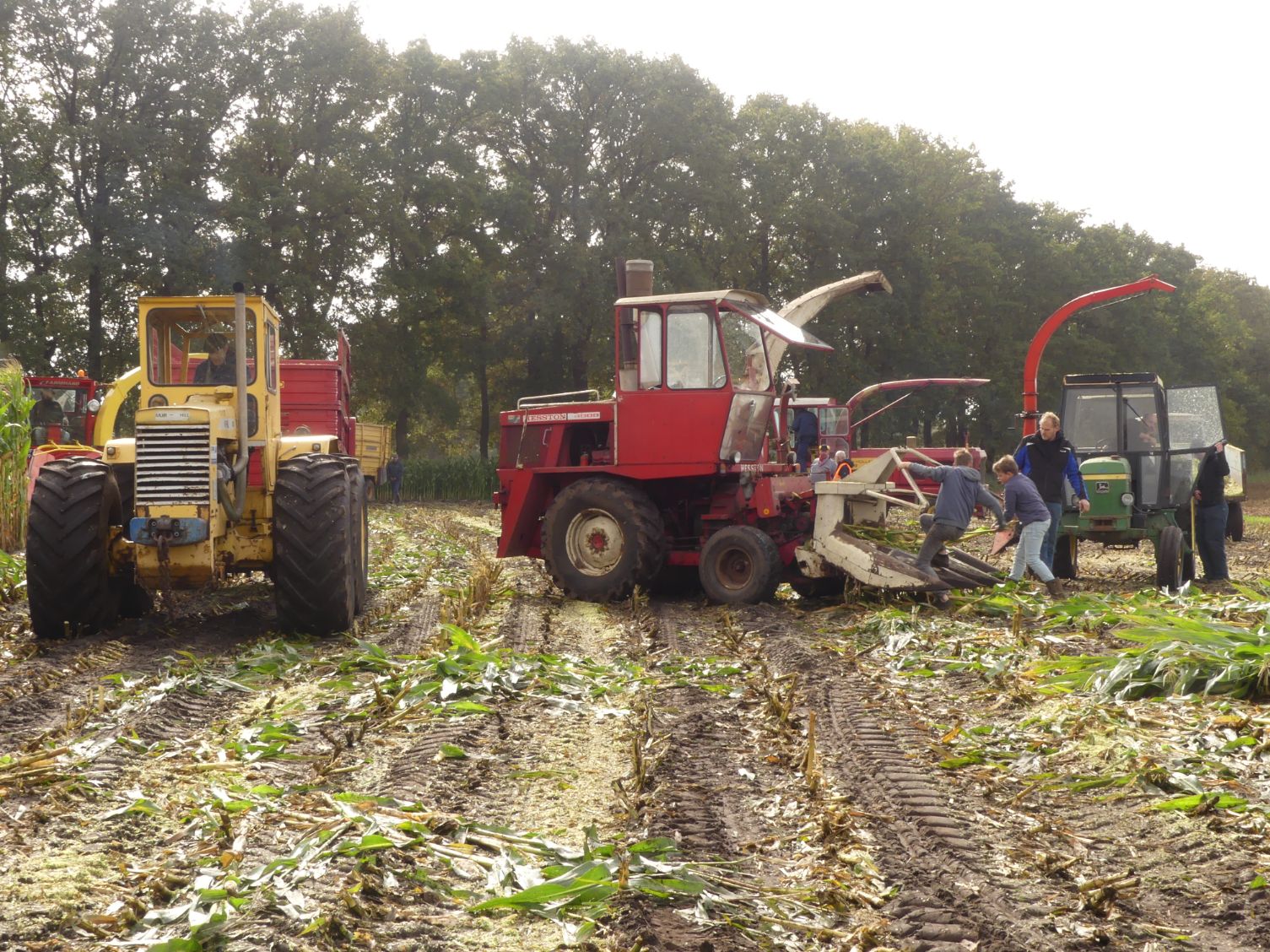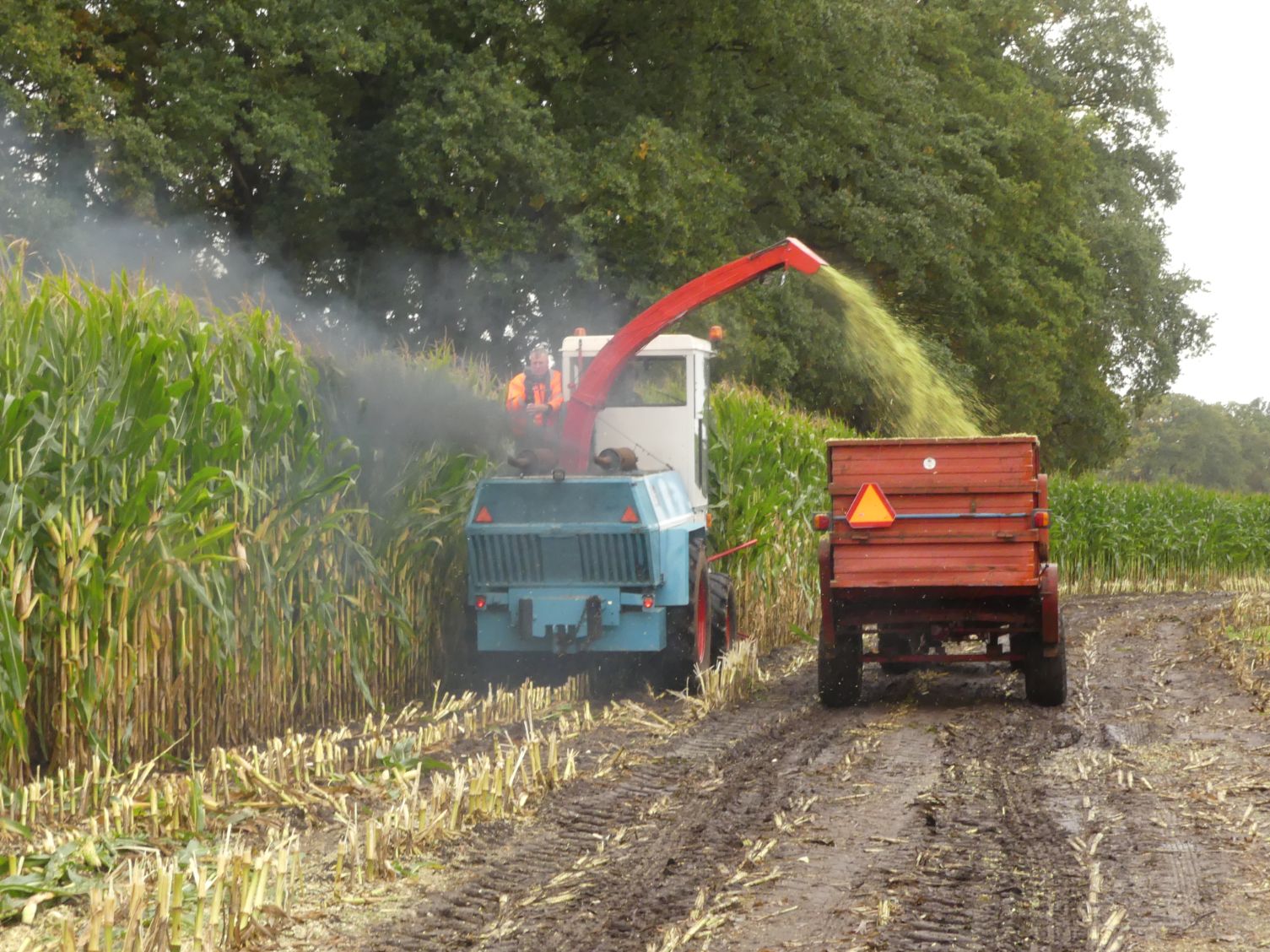 De machines, vaak tientallen jaren oud maar nog steeds in topconditie, moesten hard werken om door de zware, groen maïs heen te komen. Waar moderne machines met gemak door het gewas snijden, vergde het bij deze klassiekers vakmanschap, geduld en soms een helpende hand van de omstanders.