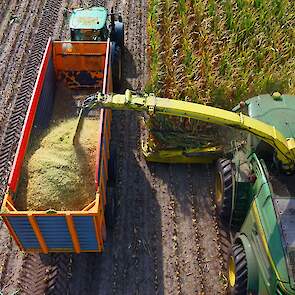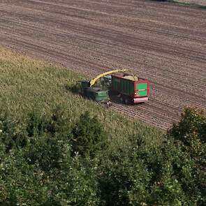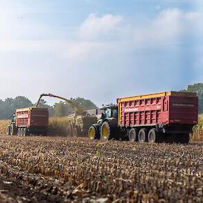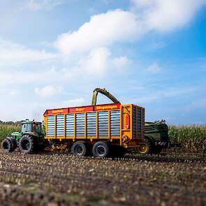 Bij loonbedrijf Vroege uit Dalen (DR) stond efficiëntie centraal tijdens het hakselen. In plaats van telkens te stoppen voor het wisselen van wagens, werd er in één keer doorgewerkt. Dat zorgde voor een vlotte en constante doorstroom op het perceel.