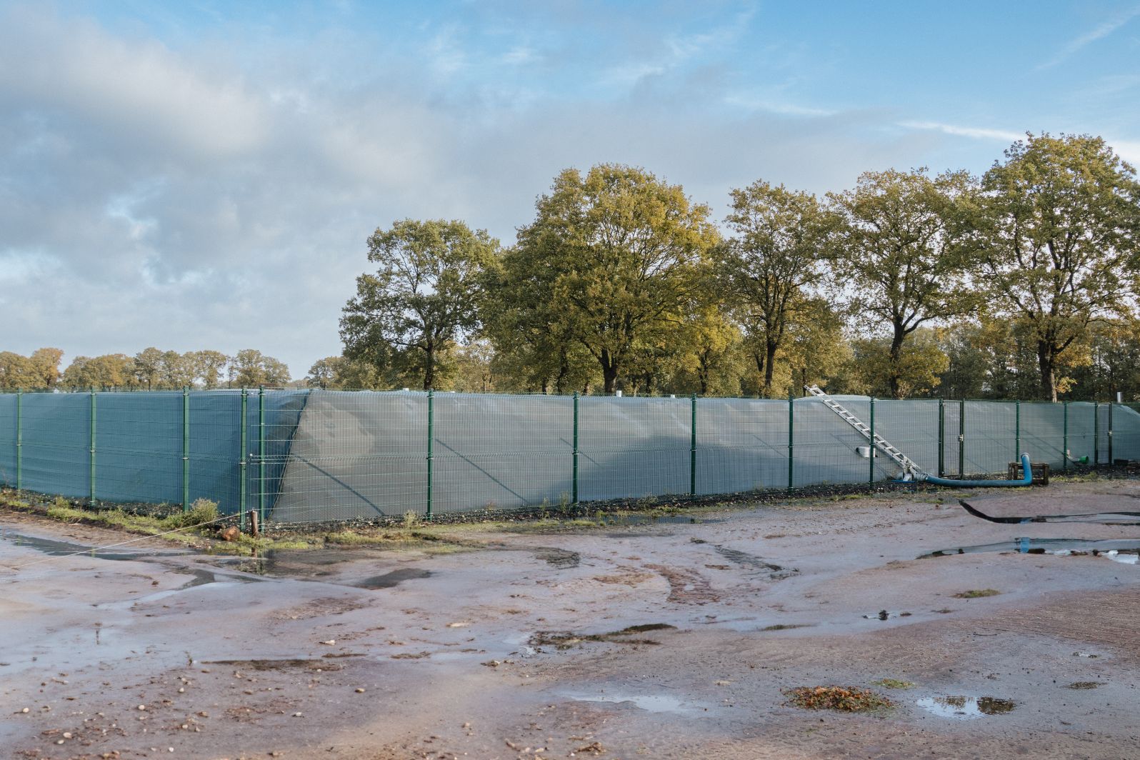 Het bassin ligt circa 1,5 meter in de grond, met een deel bovengronds. “De opslag is simpel en doeltreffend, en voor ons de mooiste en veiligste oplossing. Er kan niks mee gebeuren; een silo kan scheuren. Maar doorslaggevend was de prijs: een foliebassin is het goedkoopst als mestopslag.”