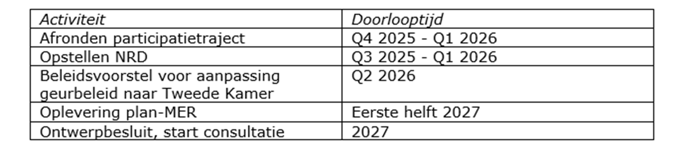 Daardoor kan de vereiste plan-milieueffectrapportage (MER) pas in de loop van 2026 worden opgesteld. De plan-MER zal de milieu-impact van verschillende beleidsopties in kaart brengen. ‘Na afronding van de plan-mer zal gestart worden met het opstellen van de wijzigingsregelgeving. Het streven is om deze in 2027 in consultatie te brengen’, schrijft Aartsen, die met nieuw beleid moet komen vanwege een rechtelijke uitspraak en aangenomen moties in de Tweede Kamer.